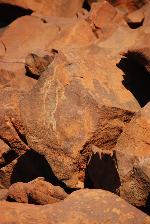 Fr. 23.5.08 Port Headland nach Süden bis Karratha Erster Halt der heutigen Etappe ist das historische Whim Creek Hotel, wo Petra sich mit dem eingesperrten Nacktaugenkakadu anfreundet und sich kaum von ihm trennen kann. Der ruft immer „Have a scratch“’ und Petra krault und krault ihn. Aber wir müssen ja weiter und erreichen Roebourne, wo wir uns das alte Gefängnis anschauen. Es beherbergt heute das Visitor Centre und das Museum mit Art Shop. In Karratha halten wir am Visitor Centre und erkundigen uns nach einer Tour in den Millstream und Chichester NP. Die Touren gibt es aber nicht mehr und so haben wir morgen wieder etwas mehr Zeit zum verplanen. Machen dann gleich unser Camp in Karratha (42 AUD! Das ist Rekord!) klar. Dann geht’s via Dampier raus zur Burrup Peninsula. Hier wollen wir am Hearson Cove Beach noch den dritten Versuch für den „Staircase of the Moon“ starten. Schauen uns nach einem kurzen Imbiss auf einem Rundweg die interessanten Rock Art Petroglyphen der Aborigines an. Kurz nach Sonnenuntergang kommen wir zum Fahrzeug zurück und scheuchen schon die ersten Kängurus auf. Da uns unsere letzte Autofahrt im Dunkeln samt Wildlife noch unangenehm in Erinnerung ist, lassen wir den erneuten Staircase-Versuch sein. Da relaxen wir lieber beim Barbie und brennen unsere bisherige Bilderflut auf DVD. |