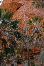 | Do. 12.6.08 In den Bungle Bungle National Park (Rock) Wir starten ohne zu tanken, denn der Sprit ist doch ganz schön teuer hier. Unser Tankinhalt reicht bestimmt noch bis Halls Creek. Wir fahren nun in den Bungle Bungle NP, denn die Strecke ist offen und gut befahrbar. Melden uns in der Ranger Station an und erfahren, dass der nördliche Teil der Bungles erst Sonnabend früh geöffnet werden soll. Wir fahren in unser vorgebuchtes Camp und sind kurz nach 13 Uhr dort. Wir wohnen hier richtig vornehm mit eigenem Bad und fließend Wasser im Zelt, sowie einem großem Doppelbett, samt Tisch und Stühlen.