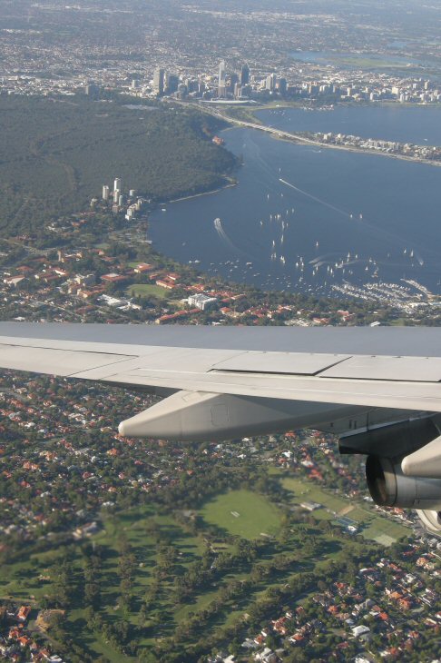 Nach 3 Runden London von oben in der Warteschleife, nun pünktliche Landung in London-Heathrow. Wir haben hier 4 Stunden Zeit und nehmen noch einen kleinen Imbiss. Vor dem Einsteigen in den Flieger nach Singapur werden wir namentlich aufgerufen. In Petras Visum stimmt das Geburtsdatum nicht, zum Glück kann der Fehler problemlos nach kurzer Zeit korrigiert werden und wir können die Maschine entern. Nach dem Einsteigen reiht sich der Flieger in die Warteschlange ein, rollt an die Startposition, dann plötzlich zur Seite und wieder zurück. Petra war schon etwas eingenickt und schaut nun ganz verwundert. Techniker fummeln nun am Triebwerk rum, von unserem Fensterplatz können wir das gut beobachten. Allmählich haben wir Sorge den Anschlussflieger in Singapur nach Perth nicht zu erwischen, denn wir haben nur 1 Stunde Zeit zum Umsteigen in Singapur. Endlich kommen wir mit fast 3 Stunden Verspätung los. Landung in Singapur ca. 2 Stunden verspätet. Wir haben großes Glück, der Anschlussflieger wartet, da ca. 70 Passagiere umsteigen müssen. Wir hechten zum nächsten Flug. Das schafft unser Gepäck bestimmt nicht. |