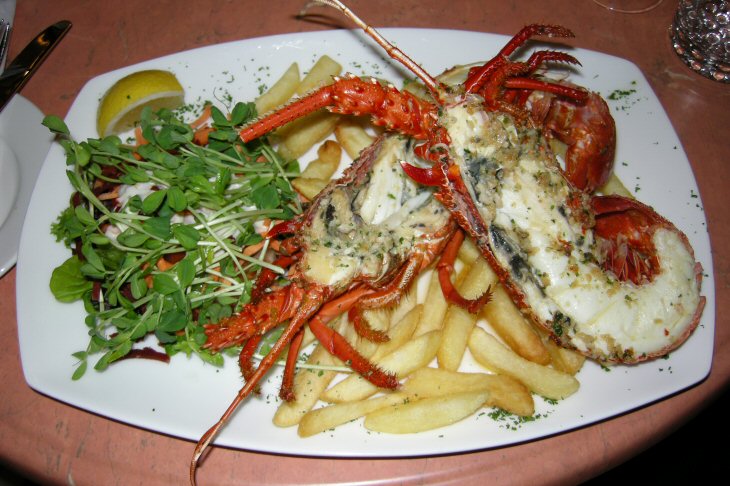 Fahren dann via Jurien Bay nach Green Head. Dort finden wir einen schönen Picknickplatz und sitzen fast auf einem Cache. Den hätten wir fast übersehen, er ist von Lyn Pat and Nathan gelegt worden, die wir in Perth trafen. Kleines Gedenken an die Beiden und weiter geht die Fahrt bis Port Denison zum Campingplatz. Wir richten uns ein, schreiben Tagebuch und machen es uns zum Sonnenuntergang gemütlich. Gehen dann hervorragenden Lobster essen, denn in dieser Gegend wird die Langustenart Western Rock Lobster frisch gefangen und die Preise sind durchaus angemessen. |