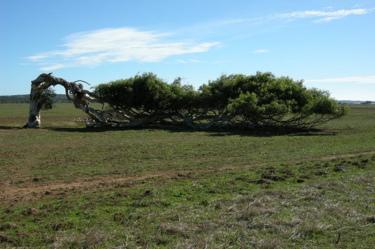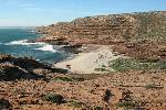 Mo. 5.5.08 Geralton bis Kalbarri Am Morgen fahren wir noch kurz zum Point Moore Lighthouse und gehen in Geraldton schnell einkaufen und tanken. Danach verlassen wir die nicht ganz so attraktive Stadt. Es geht weiter nach Northampton, ein hübscher, alter Ort und genau der richtige Zeitvertreib auf unserer Route. Dann geht’s weiter Richtung Kalbarri NP via Port Gregory mit der Pink Lagoon, deren Wasser wirklich rosa ist. Wollten eigentlich beim Prinzen der Hutt River Provence vorbeischauen, doch 30 km Schotterpiste hin und zurück sind uns nun doch zu viel. So schauen wir uns auf dem weg nach Kalbarri in aller Ruhe die südlichen Küsten-Lookouts des NP an und kommen auch recht früh auf dem Caravanpark an. Gehen zum Essen und sehen einen super Sonnenuntergang. Di. 6.5.08 Kalbarri National Park (Rock) Beeilen uns morgens, um rechtzeitig zur Pelikanfütterung zu kommen. Um 8:45 Uhr erscheinen immer mehr Touris, aber noch ist kein Pelikan in Sicht. Dann kommt der „Pelican Volunteer Feeder“ und erzählt mit der witzigen Art vieler Australier sehr interessante Fakten über die Lebensweise der Pelikane, nur – es erscheint kein einziger Pelikan! Na, wer nicht will, der hat schon. So fahren wir dann zum Loop-Walk in den Kalbarri NP, die letzten 25 km sind Schotter-Wellblechpiste. Wir präparieren uns für die 8 km Rundwanderung (lohnenswert, ca. 3 ½ Stunden), die am sehenswerten Nature Window startet und endet. Wir sind aber leider etwas spät dran und kommen in die Mittagshitze, aber zum Glück bewölkt sich der Himmel und wir genießen die recht einsame Wanderung. Da uns aber massenhaft, lästige Fliegen umschwirren überlegen wir, ob wir demnächst Fliegennetze fürs Gesicht kaufen. Kommen gut zum Ausgangspunkt zurück und fahren zum Lookout „The Loop“, dann noch mal 10 km Rüttelpiste zum zweiten Lookout „Z-Bend“. Auf dem Rückweg schütteln uns weitere 30 km Schotterpiste durch, bis wir den Caravanpark erreichen. Danach freuen wir uns auf die warme Dusche. Abends gehen wir noch einmal Lobster essen. Zurück im Camper ist die WLAN-Netzstärke niedrig und draußen tröpfelt es ein wenig. Wir wollten uns bei der lauen Nacht eigentlich draußen hinsetzen, aber ob das so gut fürs Notebook ist? Mi. 7.5.08 Kalbarri bis in die Shark Bay Gehen morgens einkaufen und besorgen uns auch gleich noch zwei Fliegennetze. Wir sehen daher eher zufällig die Pelikanfütterung – heute mit Pelikanen! Wir tanken und versuchen ein Camp in Monkey Mia zu buchen. Monkey Mia ist voll, also buchen wir für 2 Tage den Seaside Tourist Caravanpark in Denham. Fahren dann die Küsten-Lookouts ab, die wir bei Ankunft im Kalbarri NP nicht mehr geschafft haben. Auf dem Weg in die Shark Bay fahren wir noch die Aussichtspunkte „Hawks Head“ und „Ross Graham“ im Kalbarri NP an. Über die Rastplätze Galena Bridge und Nerren Nerren mit Caches zum „Beine vertreten“ kommen wir zum bekannten Overlander Roadhouse. Hier legen wir den letzten Tankstopp vor der Shark Bay ein und fahren aus reinem Interesse den Campground Nanga Bay Station an. Der war eigentlich für die Rücktour eingeplant, gefällt uns aber nicht. Bei der Ankunft im Seaside Caravanpark in Denham verlängern wir unseren Aufenthalt gleich um 2 weitere Tage, da wir einen schönen großen Stellplatz bekommen haben. Dessen Untergrund besteht aus kleinen weißen Muscheln. Wir gehen dann im Old Pearler Restaurant, einem kleinen urigen Lokal ganz aus Muschelblöcken gebaut, essen. Heute können nach dem Duschen bei einem lauen Abend gemütlich draußen sitzen. Do. 8.5.08 Denham und Francois Peron Homestead Nach dem Frühstück, fahren wir gleich zum neuen Visitor Centre, das für den Ort vielleicht etwas überdimensioniert geraten ist. Dort erkundigen wir uns nach Ausflugstouren in Monkey Mia. Buchen für Samstagabend die Wanderung mit einem Aboriginie und für nachmittags eine Bootstour, so haben wir den Vormittag für die Delfine frei. Wegen starker Regenfälle in den letzten Tagen ist der Francois Peron NP wegen Überflutungen geschlossen, aber man kann bis zum Francois Peron Homestead fahren. Auch die Straße nach Hamelin Pool mit den Stromatolithen ist unpassierbar, dies hatten wir bei der Anfahrt zur Shark Bay schon bemerkt. Wir gehen einkaufen und schauen uns die Hauptstraße des Ortes an. Dann ab in die Internet Station, wo wir endlich die bereits vorgeschriebenen Cachelogs und TB’s loggen können, das dauert rund eine Dreiviertelstunde. Danach fahren wir zur Little Lagoon – sehr schön hier, aber leider kein Schatten. Für uns nicht das Richtige zum picknicken und Karten schreiben und so fahren wir weiter zum Francois Peron Homestead, einer alten Schaffarm. Die können wir ungestört besichtigen und bekommen Erklärungen von den netten Freiwilligen, die die Anlage in Schuss halten. Sie freuen sich sehr über jeden Besucher, den die alten Gerätschaften rund um die Schafschur interessieren. Hier gibt es auch eine schöne Wiese mit Picknickplatz und Wasserloch. Packen unsere Fressalien aus und schreiben Karten. Da kommt Besuch! Das Wasserloch zieht wildlebende Emus an, die im Wasser baden. Also auf zur Fotojagd und so vergeht der Nachmittag wie im Flug. Zurück im Camp planschen auch wir noch kurz im kalten Indischen Ozean. Heute Abend grillen wir und sitzen noch nett draußen, es wird jedoch feucht und klamm, also verziehen wir uns dann ins Fahrzeug. Fr. 9.5.08 Denham und südliche Aussichtspunkte der Shark Bay Bei der Morgentoilette gibt Petras Fön den Geist auf. Na, muss jetzt also erst einmal ohne gehen. Fahren zur der im Jahr 1954 aus Muschelblöcken erbauten Kirche, dem traditionellen Baumaterial von Denham. Dann besuchen wir die Aussichtspunkte, die für die Rücktour gedacht waren, damit wir dann gleich durchfahren können und nicht im Nanga Bay Station Camp nächtigen müssen. Fahren zum Denham Lookout, Eagle Bluff, Whalebone Lookout, Goulet Bluff und zum Shell Beach. Beim Eagle Bluff angekommen, sehen wir große Haie und Man