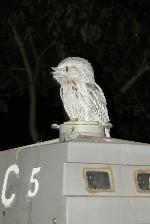 In der Mittagshitze sind es nun immer noch 550 m Luftlinie bis zum Versteck, das auch nicht einfach zu finden ist. Die Sucherei und Rückfahrt dauern auch wieder eine Weile aber wir kommen wieder gut am Highway an. Nun geht es zügig nach Broome. Wir schauen uns die Caravanparks am Cable Beach an und werfen einen Blick auf den tollen Strand. Informieren uns noch kurz im Visitor Centre in der City. Wählen den Caravanpark am Town Beach. Es sind nur noch wenige Powersites frei aber wir bekommen einen schönen Platz und können abends im Satay-Hut and Beergarden gleich am Eingang des Caravanparks essen. Später schreiben wir noch Postkarten und Tagebuch und begegnen kurz vor dem Schlafengehen noch 2 „schrägen Vögeln“. Was da so regungslos auf dem Stromkasten sitzt ist keine Vogelattrappe sondern ein Eulenschwalm. Die nachtaktiven Vögel können wir prima beim Insektenfang beobachten und fotografieren. |